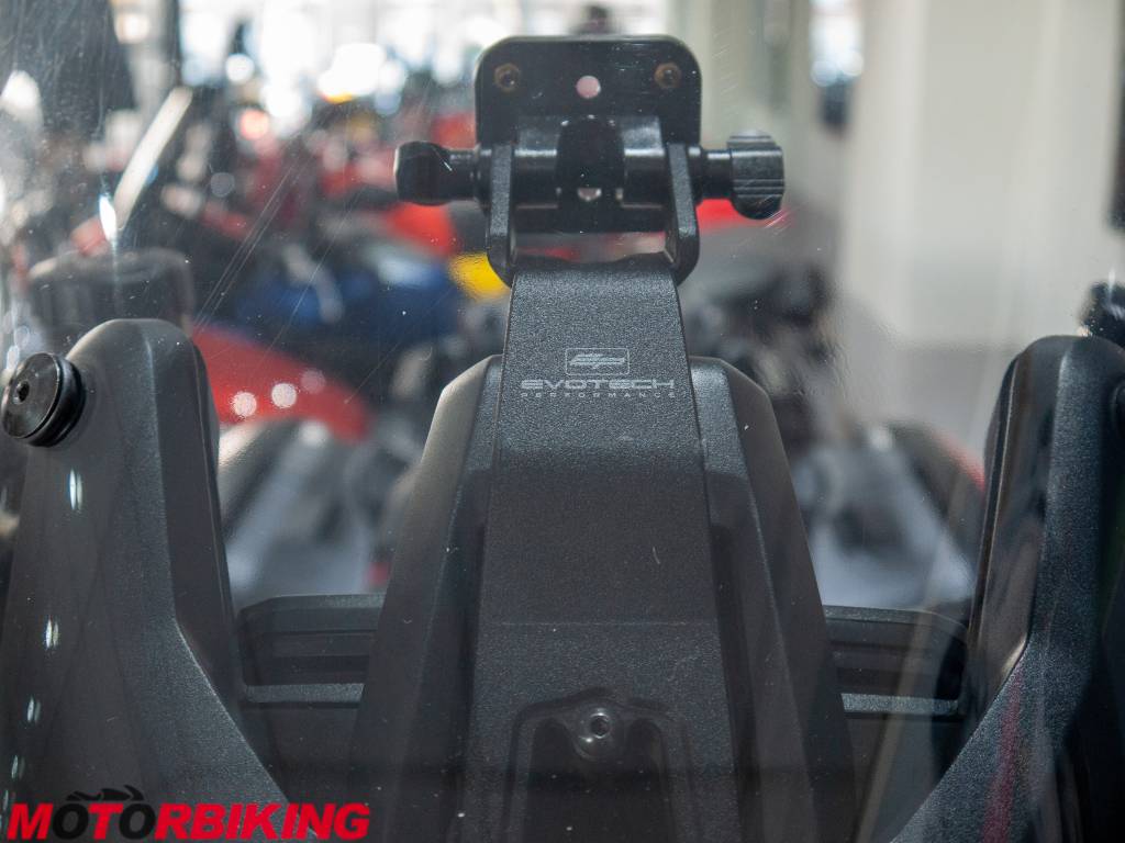 In addition, there have been a handful of purposeful and quality extras fitted. These include Evotech - hand guard protectors, radiator guard, front engine guard, sat nav mount, crash protectors, spindle protectors and finally, a Pyramid fender extender.