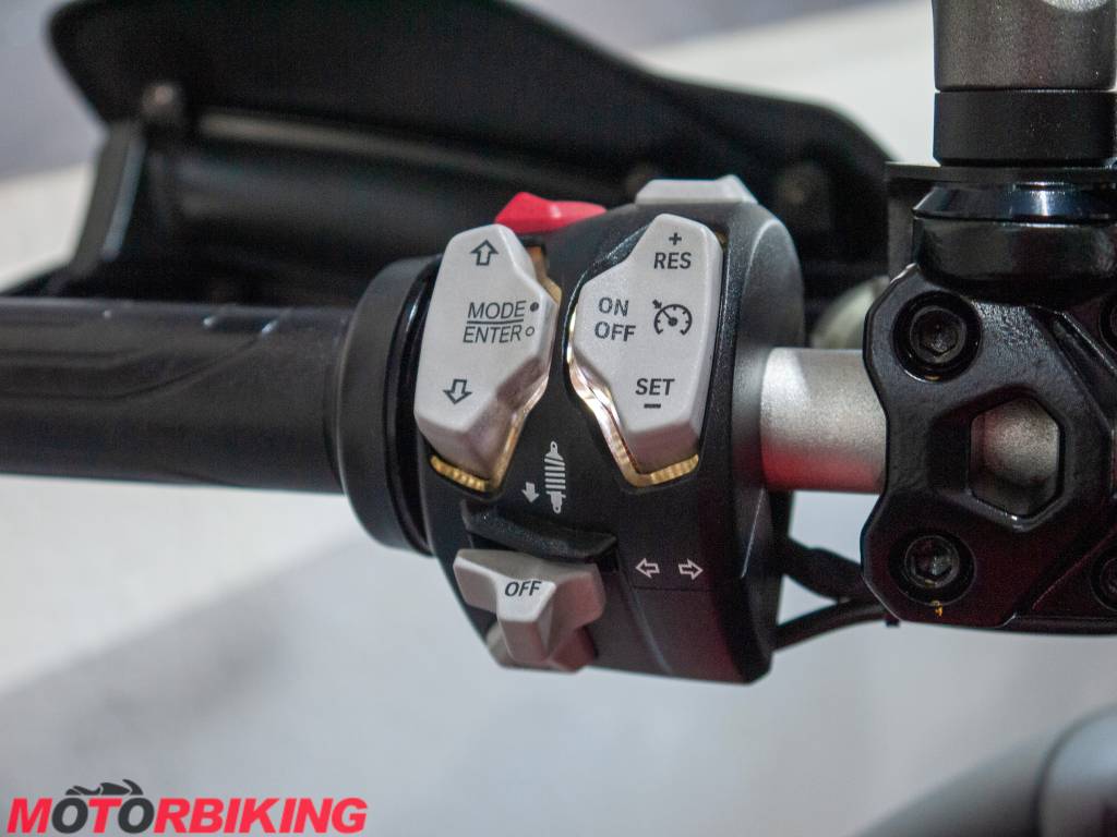 This being the S variant means it includes semi-active suspension and with the Travel pack added, you get the panniers, a main stand and factory fitted heated grips.